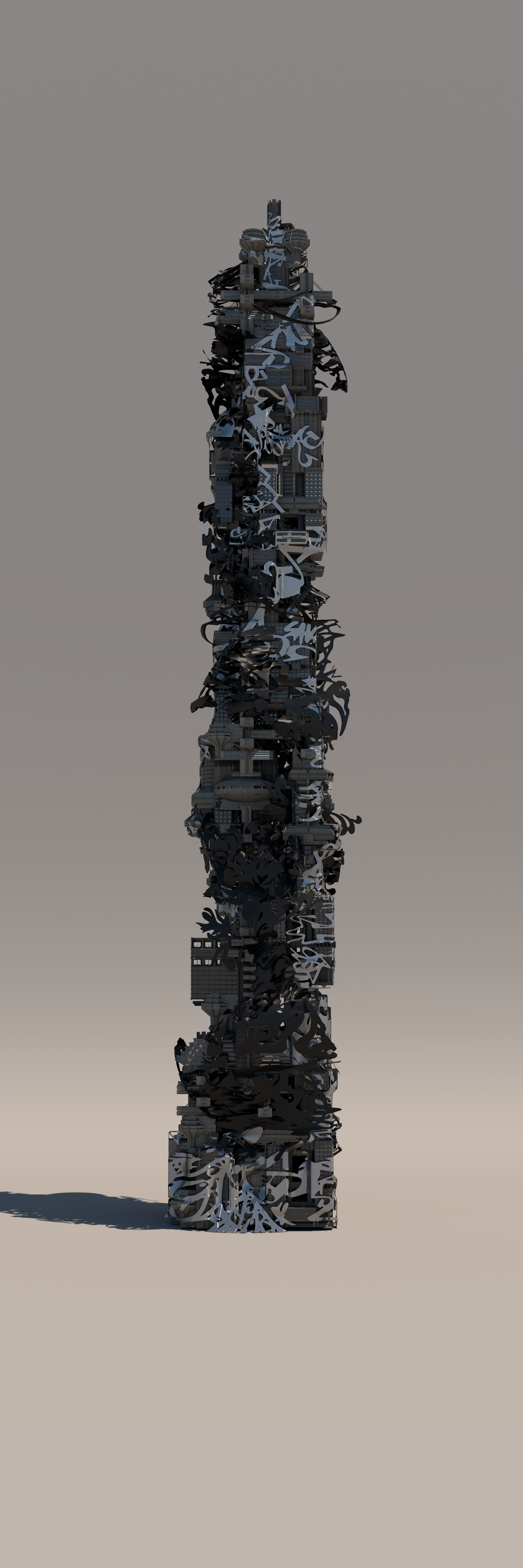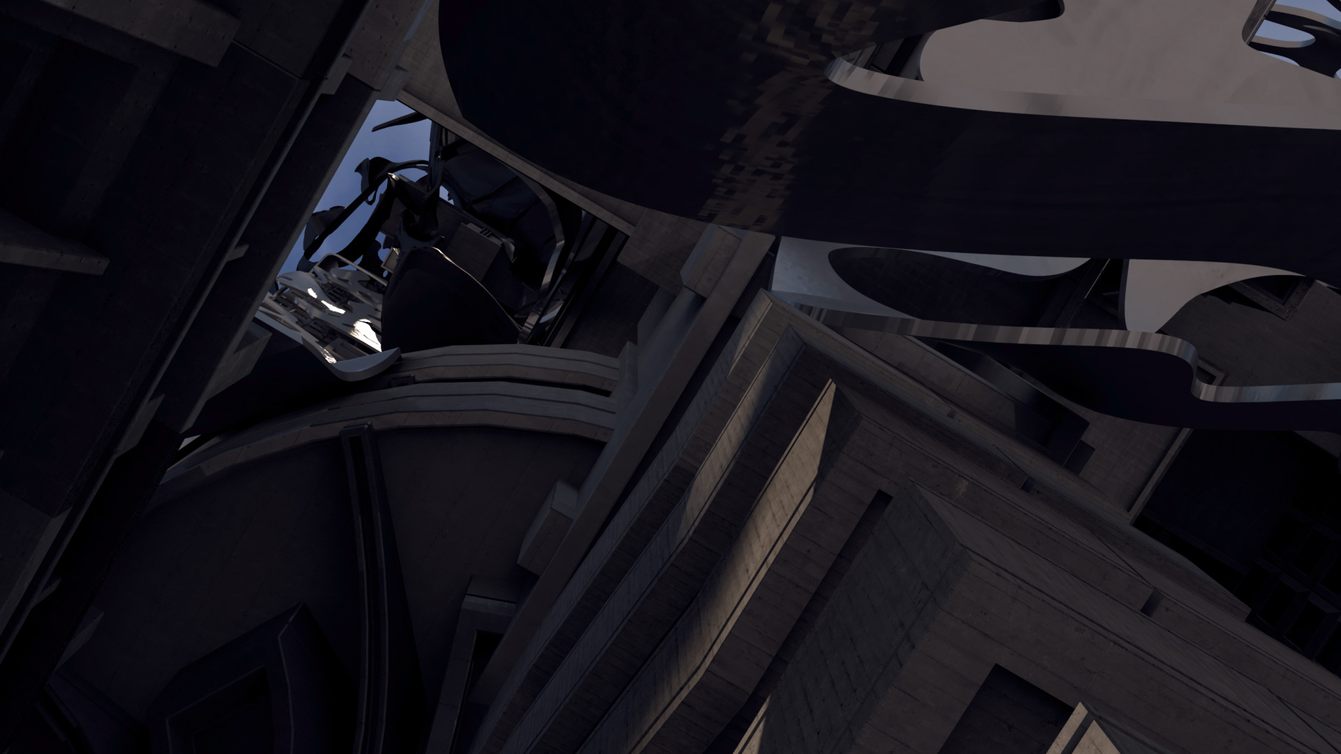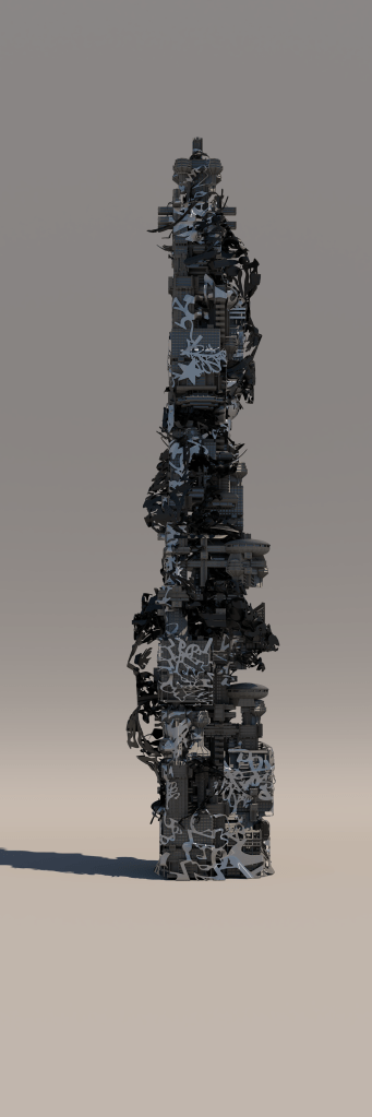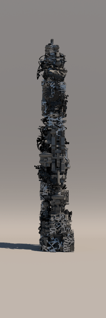 - Zbrush – This software was the primary modeling tool for this thesis. The building was kitbashed together in ZBrush, and the exterior facade of the building was also created in Zbrush. The Elevator and all of its parts were also built in ZBrush.